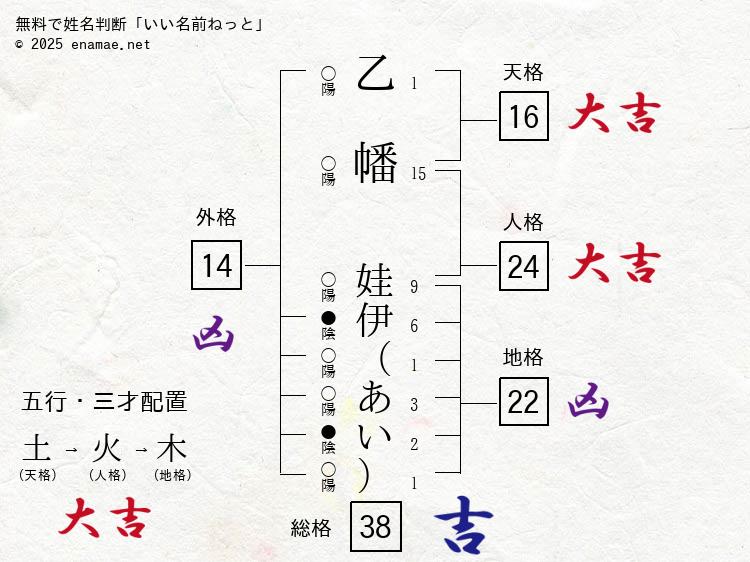 総格(総運)は38画で『吉』