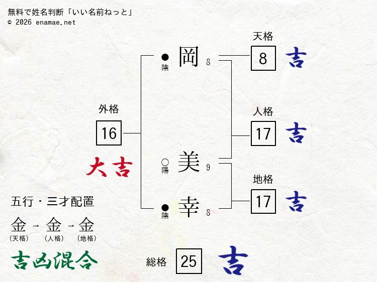 当サイトでは五格以外に『陰陽配列』と『三才配置』による判定もしています。