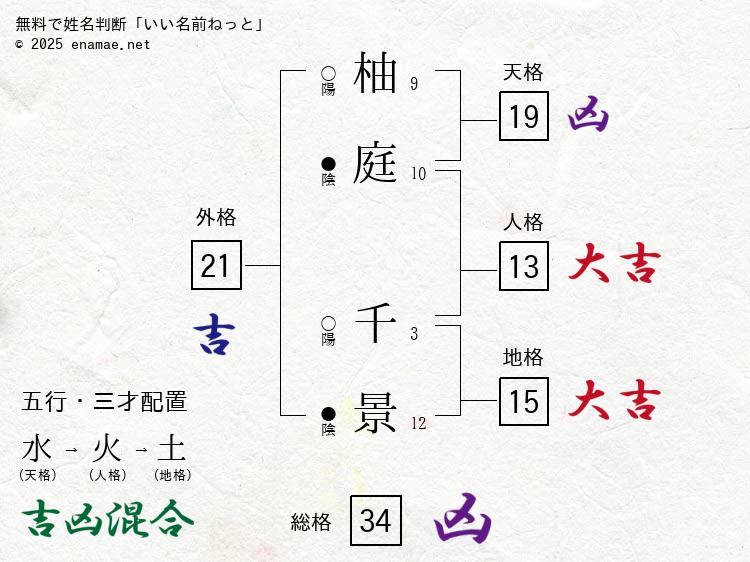 柚庭千景(ちかげ)- 女性の姓名判断診断結果