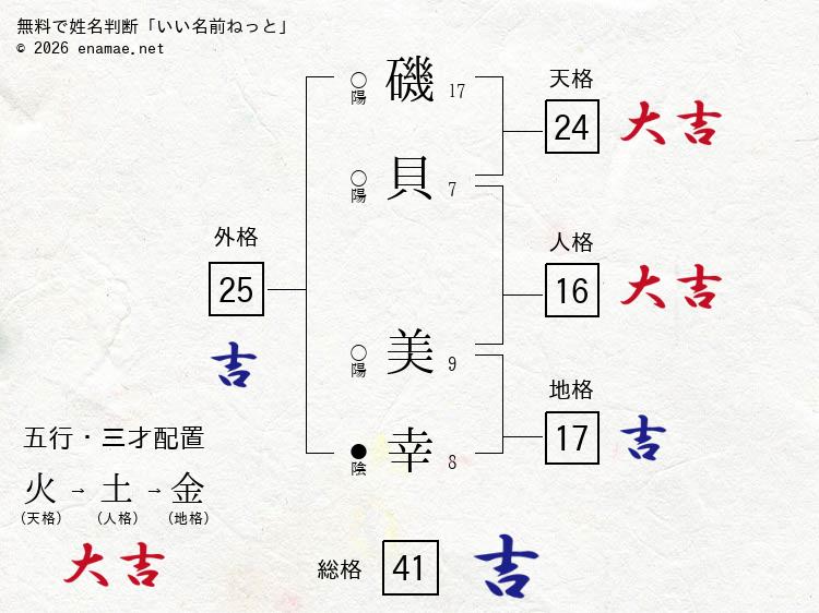 磯貝美幸- 女性の姓名判断診断結果