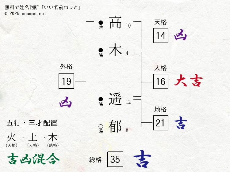 高木遥郁と同じ五格の著名人・歴史上の人物
