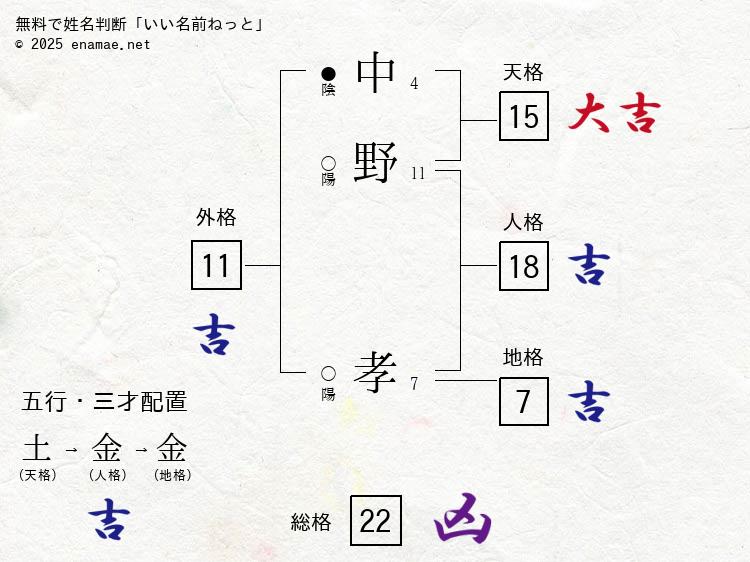 三才配置は『土⇒金⇒金』で『吉』