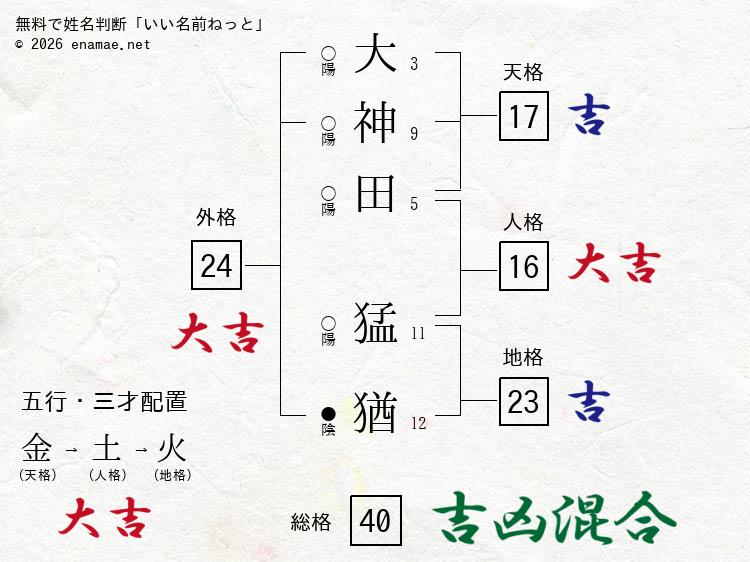三才配置は『金⇒土⇒火』で『大吉』
