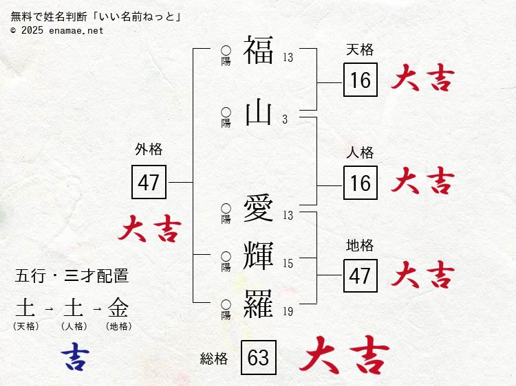 当サイトでは五格以外に『陰陽配列』と『三才配置』による判定もしています。